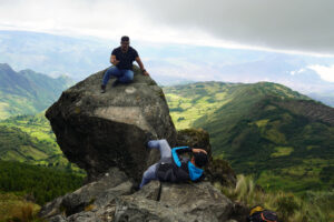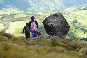 Llegar a la cima, a 3.670 metros de altitud, significa avanzar e ir identificado las formas de cada roca, descubrir también la laguna Yaguarcocha y empezar una pequeño descenso hasta llegar a la piedra movedora. Y sí, lo primero que quieres hacer es moverla; la miras de una lado, vas al otro y piensas cómo esa roca que esta al borde de un abismo se mueve y no cae. Los habitantes del sector mencionan que algunas veces han ido en grupos grandes para empujarla; también indican que su forma se asemeja a la cabeza de una serpiente, animal sagrado de los Cañaris.