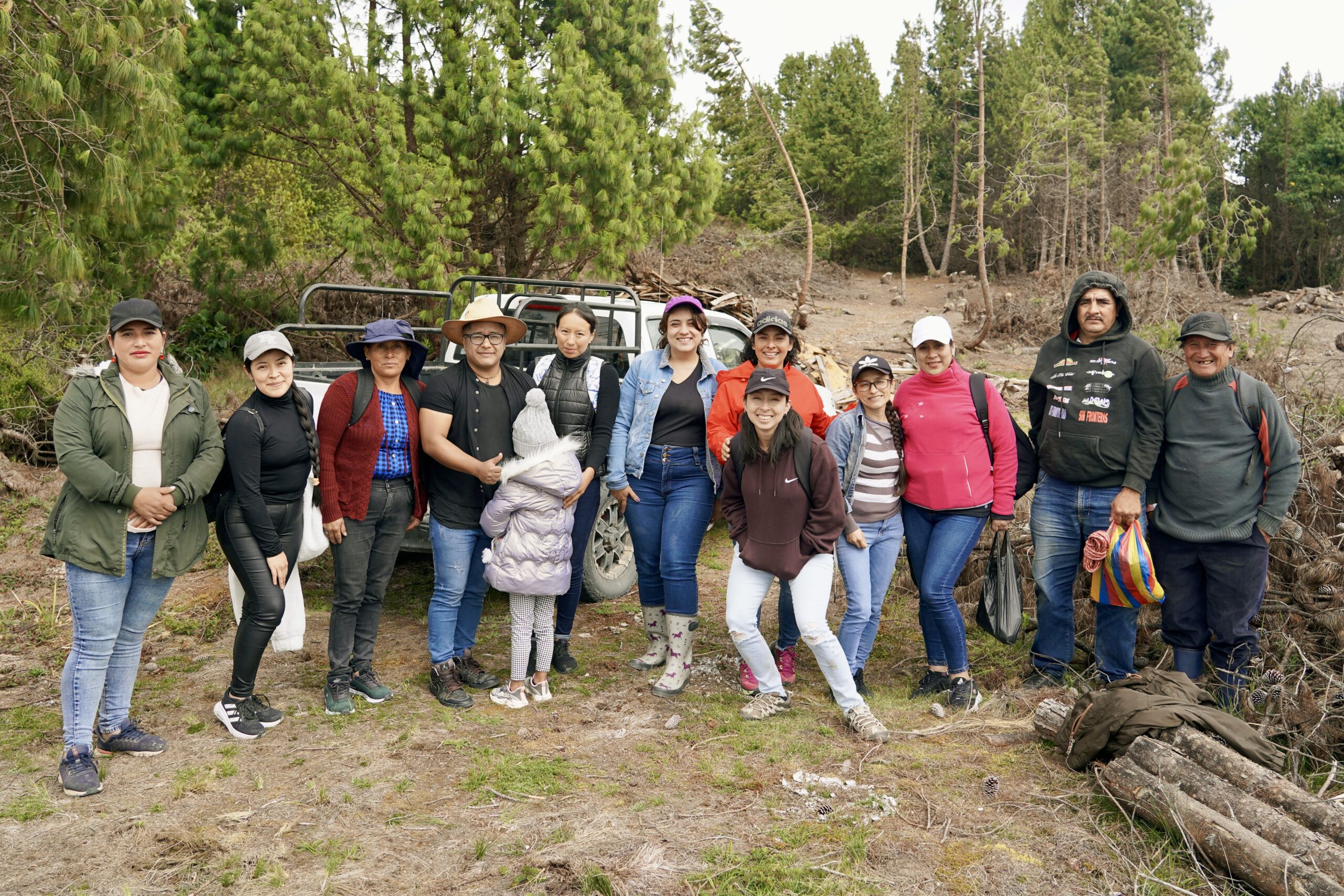 La caminata inicia en un bosque de pinos en el Cerro Bolarrumi