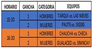 El evento inaugural se desarrollará a partir de las 14:00 en las canchas sintéticas del Colegio de Ingenieros Civiles del Azuay, en donde además se elegirá al equipo mejor uniformado y a la madrina de deportes, terminado este acto se desarrollarán los primeros encuentros, mismos que serán los siguientes: